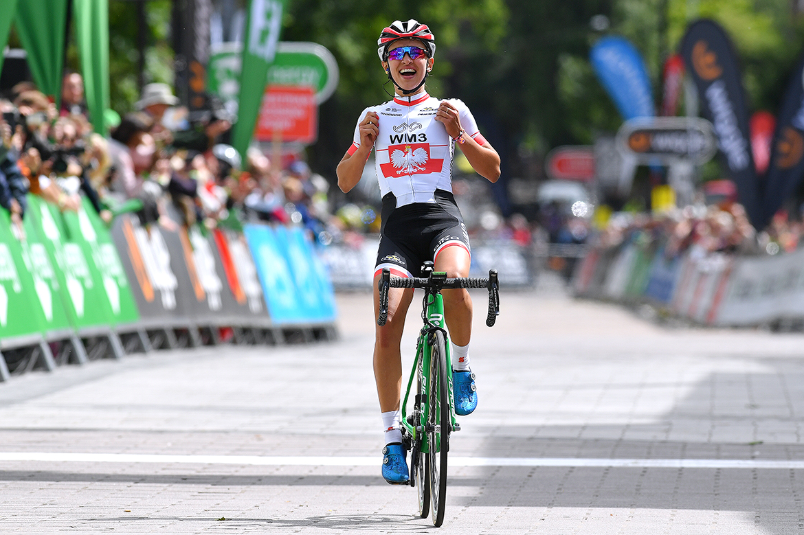 Kasia Niewiadoma (WM3 Pro Cycling) stamped her authority on the Women’s Tour with a storming solo victory in Kettering on stage 1. The rising star of Polish cycling was nursing an injury ahead of the race but showed no signs of being hindered as she took 1:46 out of her rivals.