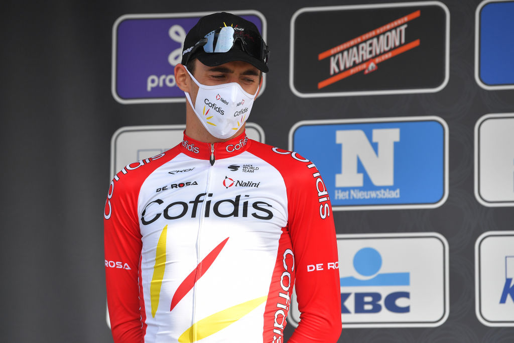 The Dutchman was able to establish his advantage during a period of flux in the groups behind. However, it looked like the tables were about to turn when the race exploded again on the Knoketeberg with 36km to go. There, the chase was concentrated into a strong group of eight: Laporte, Sénéchal, Jasper Stuyven (Trek-Segafredo), Greg Van Avermaet (AG2R Citroën), Warren Barguil (Arkéa-Samsic), Victor Campenaerts (Qhubeka Assos), Luke Durbridge (Team BikeExchange), and Rui Oliveira (UAE Team Emirates).