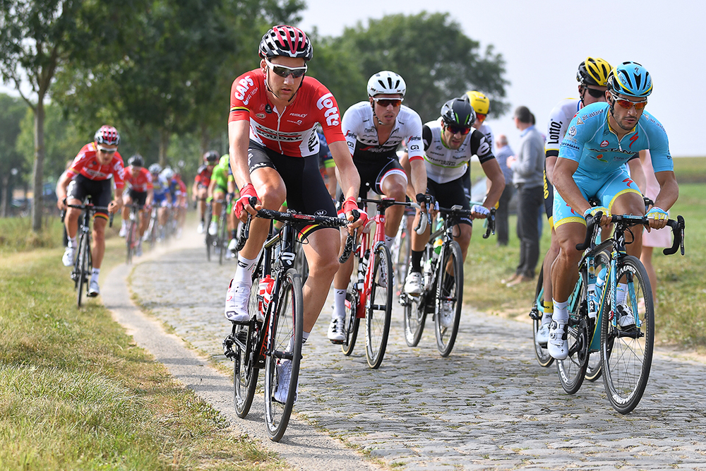 The 202km stage started out from Aalter, near Gent, before making its way towards the south of Brussels, where the true challenges awaited, with two laps of a 32km finishing circuit that featured two categorised sectors of pavé – not to mention plenty of cobbles elsewhere – and two short climbs.