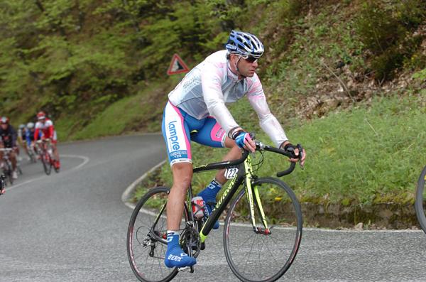 The two escapees reached the day's second category two climb, the 654m high Spolverina, still sharing the pace-making duties equally and holding a lead of five minutes. While Bertogliati and Lloyd worked their way steadily up the ascent, riders in the peloton launched attacks ultimately resulting in a five-man chase group containing Caye Sarmiento Tunarrosa (Acqua & Sapone), Johann Tschopp (BBox Bouygues Telecom), Matteo Bono (Lampre-Farnese Vini), Evgeni Petrov and Serguei Klimov (Team Katusha).