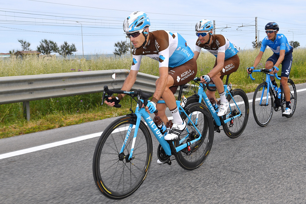 After a few early skirmishes, a breakaway went, with a full house of Italian Pro Continental teams. Jacopo Mosca and Eugert Zhupa were there for Wilier Triestina-Selle Italia, Mirco Maestri and Manuel Senni for Bardiani CSF, and Marco Frapporti for Androni Giocattoli-Sidermec. Frapporti has been a constant feature of breakaways so far at this Giro d’Italia, and was already way ahead in the Premio Fuga standings - awarded to the rider with most kilometres spent in the break - before he set off for another 200km or so out front.