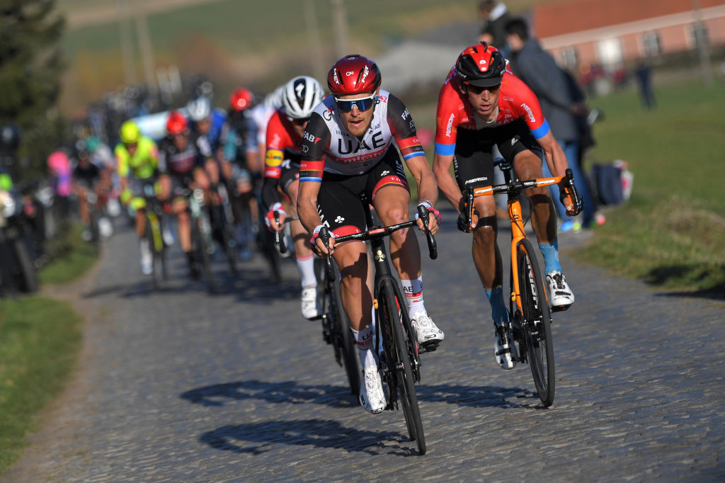 With the gap between the leading group and the chasers having stagnated at about 50 seconds, Matteo Trentin (UAE Team Emirates) attacked from this group on the final cobbled section, 35km from the finish. He failed to break up the group, but did bring the gap down to under 30 seconds.