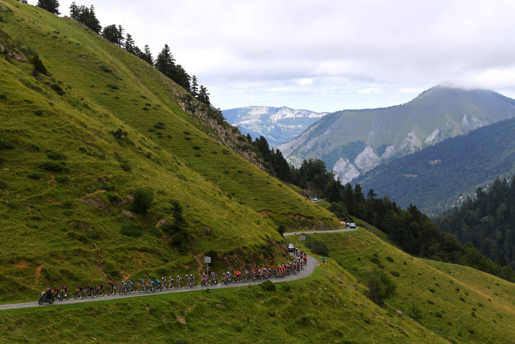 The stage began with a group of eight riders on the attack: Benoît Cosnefroy (Ag2r la Mondiale), Harold Tejada (Astana), Julien Bernard (Trek-Segafredo), Georg Zimmermann (CCC Team), Matthieu Ladagnous (Groupama-FDJ), Lilian Calmejane (Total Direct Energie), Joan Bou (Euskaltel-Euskadi) and Julien Trarieux (Nippo-Delko). Their gap quickly reached more than 3 minutes before Ineos riders gathered at the front of the peloton and began to move it along more swiftly, allowing them little leeway for the rest of the day.