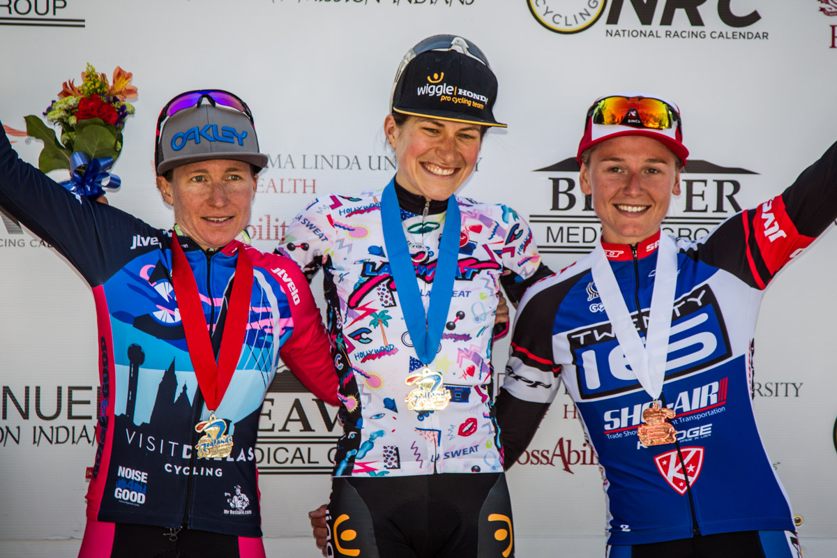 The Wiggle Honda rider who is guest riding with LA Sweat this week showed why she was excited about the stage 3 finish when she rode away from the rest of the peloton on the Oak Glen climb and soloed across the line by more than a minute. Visit Dallas rider Amber Neben was second on the stage, followed by Twenty16-ShoAir’s Allie Dragoo in third.