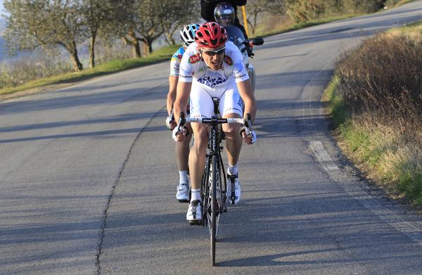 The 230km stage got off to an early start under sunshine in San Vincenzo. Diego Caccia (Farnese Vini-Sella Italia) took off immediately after the official start and was soon joined by Stefano Pirazzi (Colnago-CSF Inox).