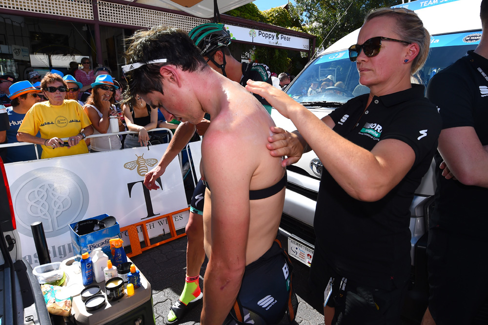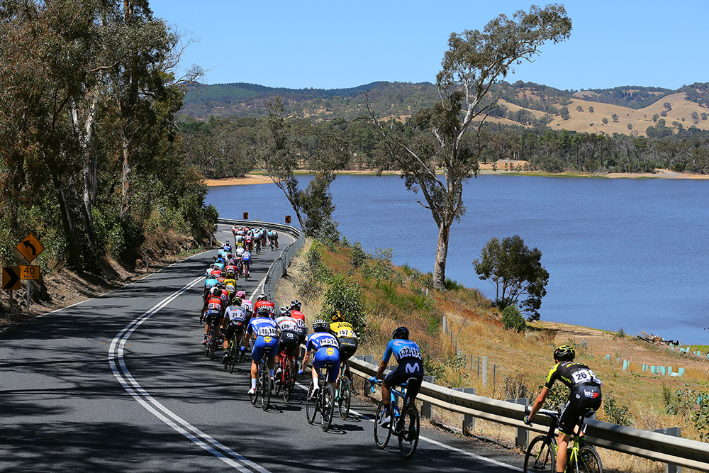 The 148.6km stage from Unley to Stirling was contested under stifling conditions with temperatures above 30 degrees. That didn't deter the escape artists, however, and as soon as the lengthy 14km neutral roll out was over a group of four slipped away.