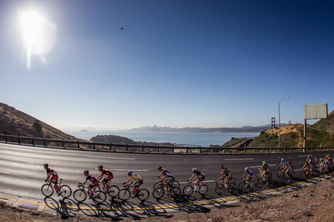 A breakaway of three riders - including Vacansoleil's Thomas De Gendt, Bissell Pro Cycling's Jason McCartney and Bontrager's Duchesne - set out for a long day off the front almost immediately after a neutral rollout that took riders over San Francisco's iconic Golden Gate Bridge. De Gendt, who had already been in several lengthy breakaways during the week, initiated the moved and was quickly joined by the 37-year-old Bissell rider and the 21-year-old from Bontrager.