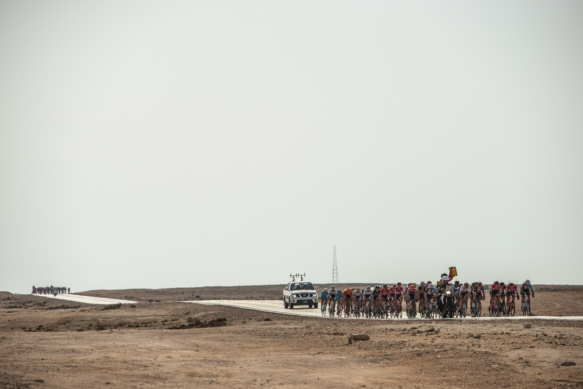 Fortunately for the peloton, the deserts winds were not blowing very strong today, producing a more relaxed and safer day of racing. However, the racing started fast, with the peloton splitting under the pressure and several punctures making for a hectic start.