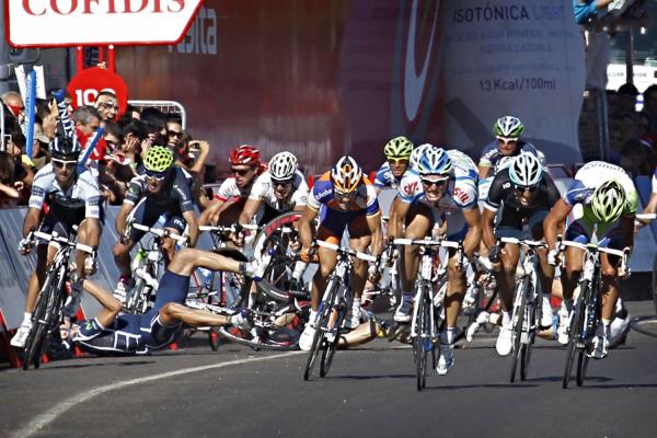 The high drama came at the end of another rather unspectacular stage that saw Sylvain Chavanel (Quick Step) remain in the red leader’s jersey at day’s end despite the carnage in the final metres. The Frenchman still sits 15 seconds ahead of Katusha’s Dani Moreno, with the defending champion Vincenzo Nibali (Liquigas-Cannondale) looming large a further second behind in third overall.