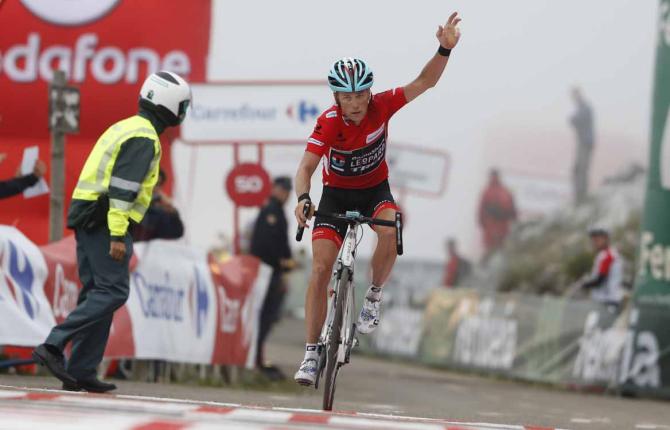 Horner raised an arm in celebration as he crossed the line, before sinking to the road after he had been helped off his bike, a broad smile across his face. The bonus seconds he gained on the line for second place behind Elissonde pushed his overall advantage out to 37 seconds over Nibali going into the final day in Madrid. The ltalian was caught by Alejandro Valverde (Movistar) on the final ramps of the Angliru, which ensured that the Spaniard secured the final place on the podium.