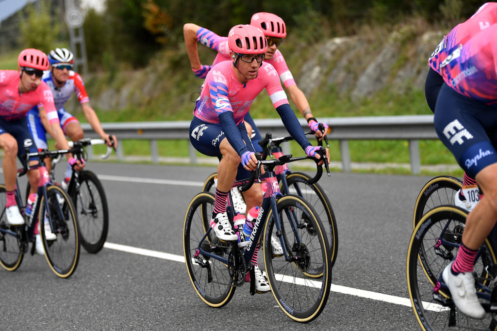 The first half of the stage skirted the coast without much drama, before turning inland at Zumaia for the riders to tackle a tougher second part. The long drag to the first climb of the day, the Puerto de Udana (6km at 2.3 per cent) saw Burgos-BH take up a position alongside Jumbo-Visma, while EF Pro Cycling's Daniel Martínez took a tumble in the peloton 95 kilometres out.