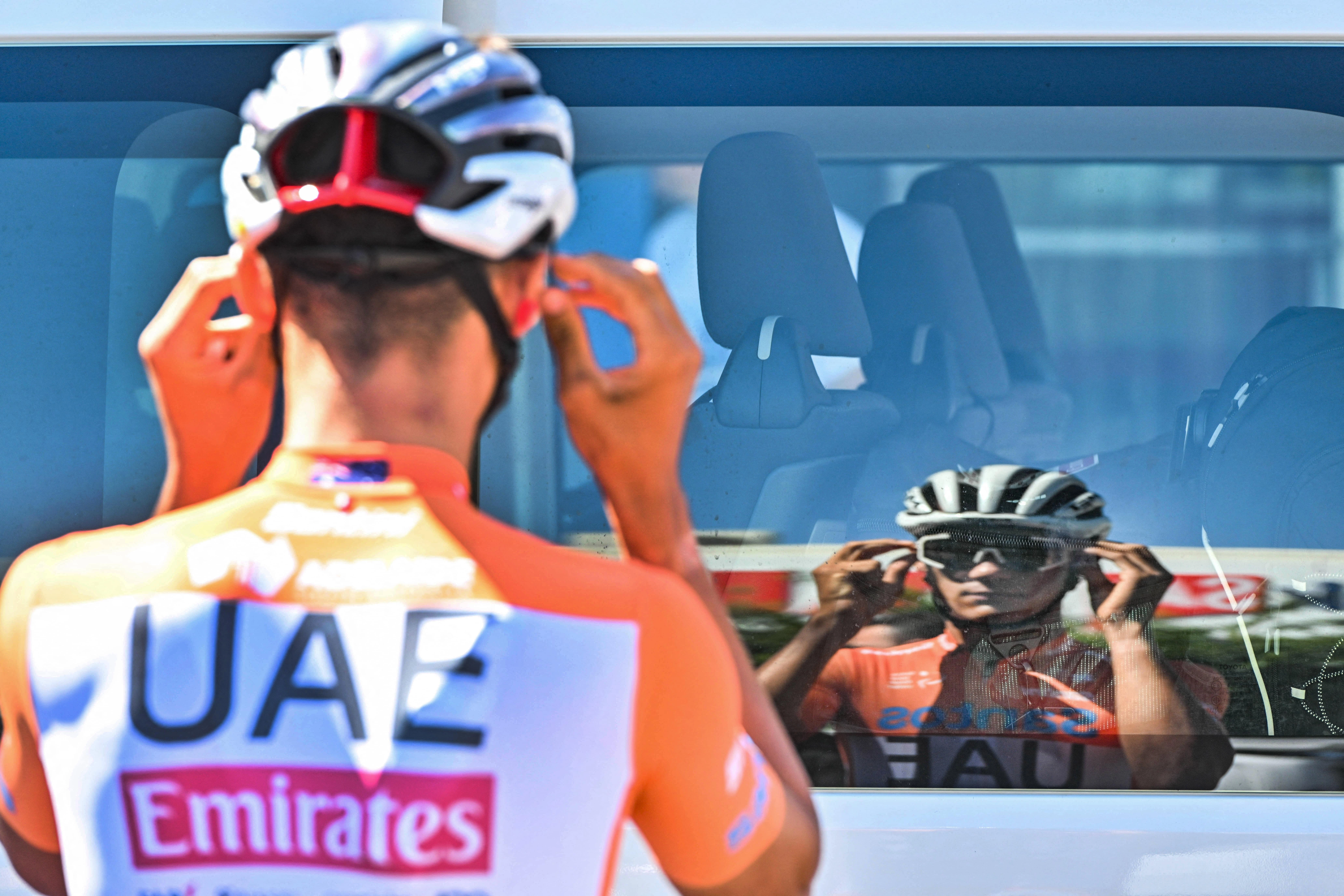 Isaac del Toro, one of the break-out stars of the race, readies himself ahead of his second day in the leader's ochre jersey.