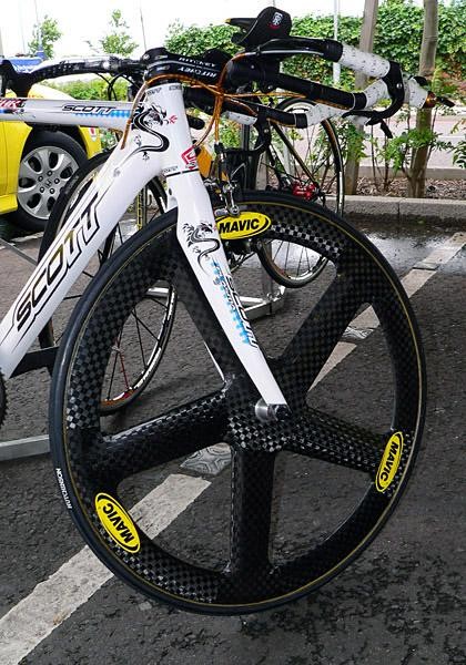 Mavic's Comete carbon fiber rear disc is a common sight at TT time.(Image credit: James Huang/Cyclingnews.com)