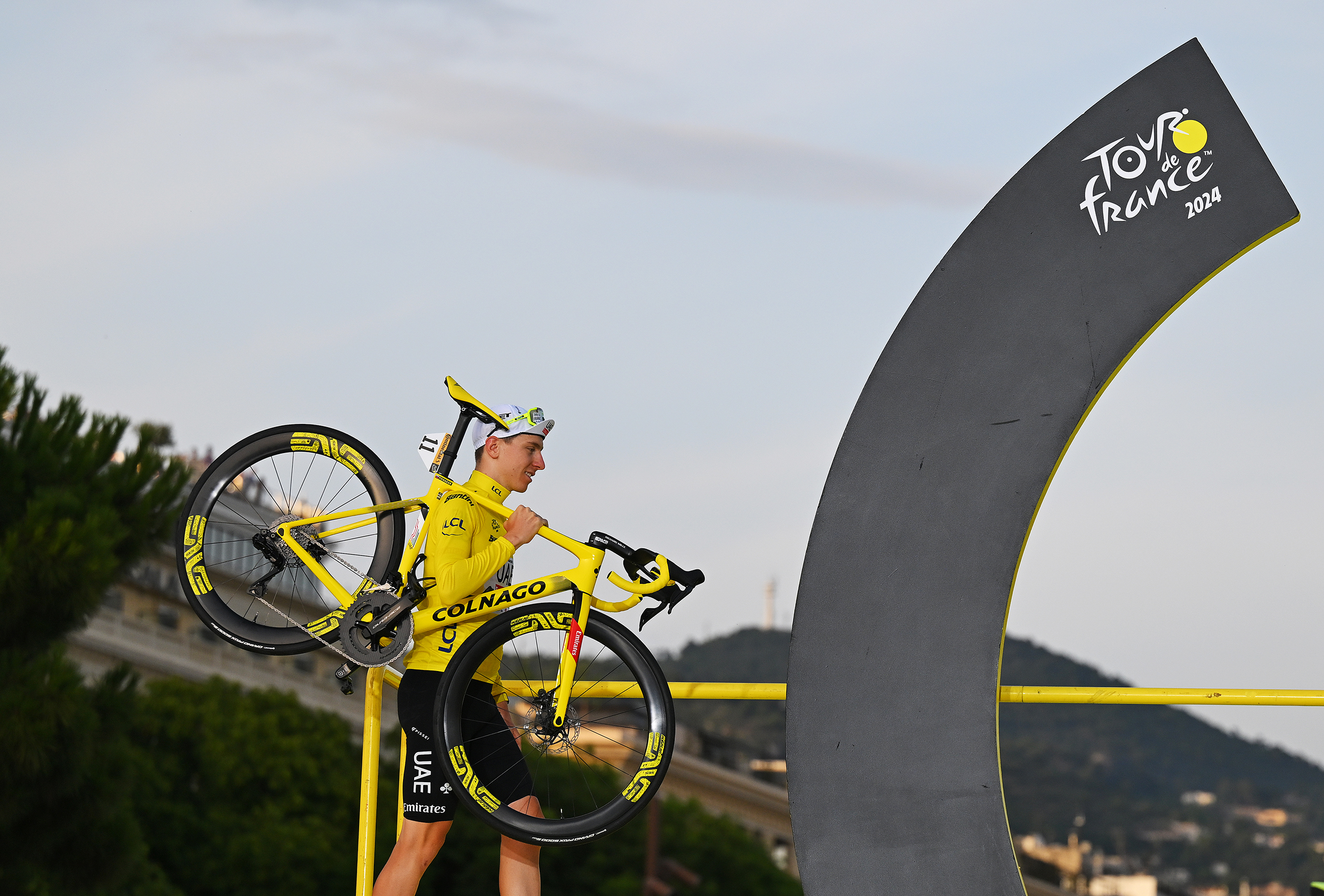 Brands will always roll out specially-painted bikes for the classification holders, and in 2024 things were no different, but there will be no photo of Tadej Pogačar rolling down the Champs Élyseés on a yellow bike sipping champagne.