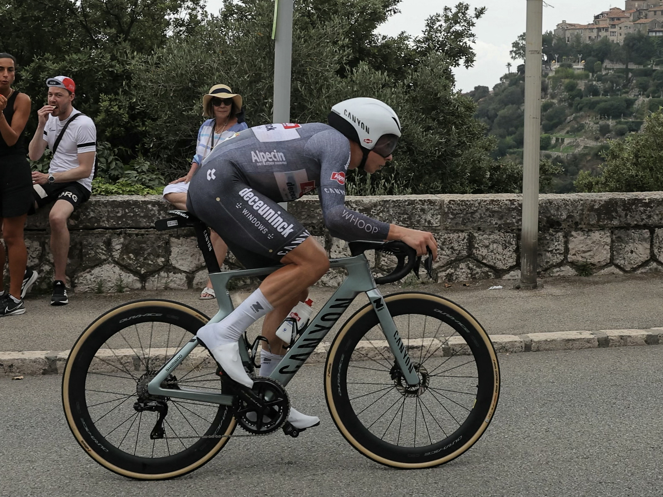 Jasper Philipsen did the same. Hell will freeze over before Philipsen wins a hilly time trial at the Tour de France, so we wouldn't be surprised if he used his road bike simply to let his mechanics have an easier day. He did, however, use a new helmet from Abus. (Image credit: Getty Images)