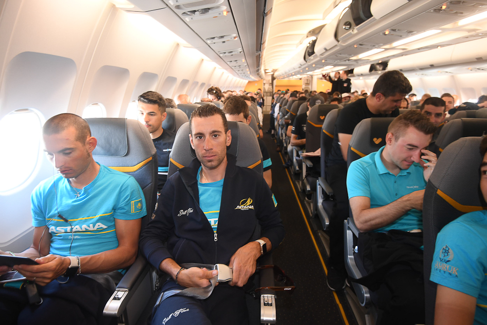 Vincenzo Nibali arrives in Italy on the Giro's first rest day.(Image credit: RCS Sport)
