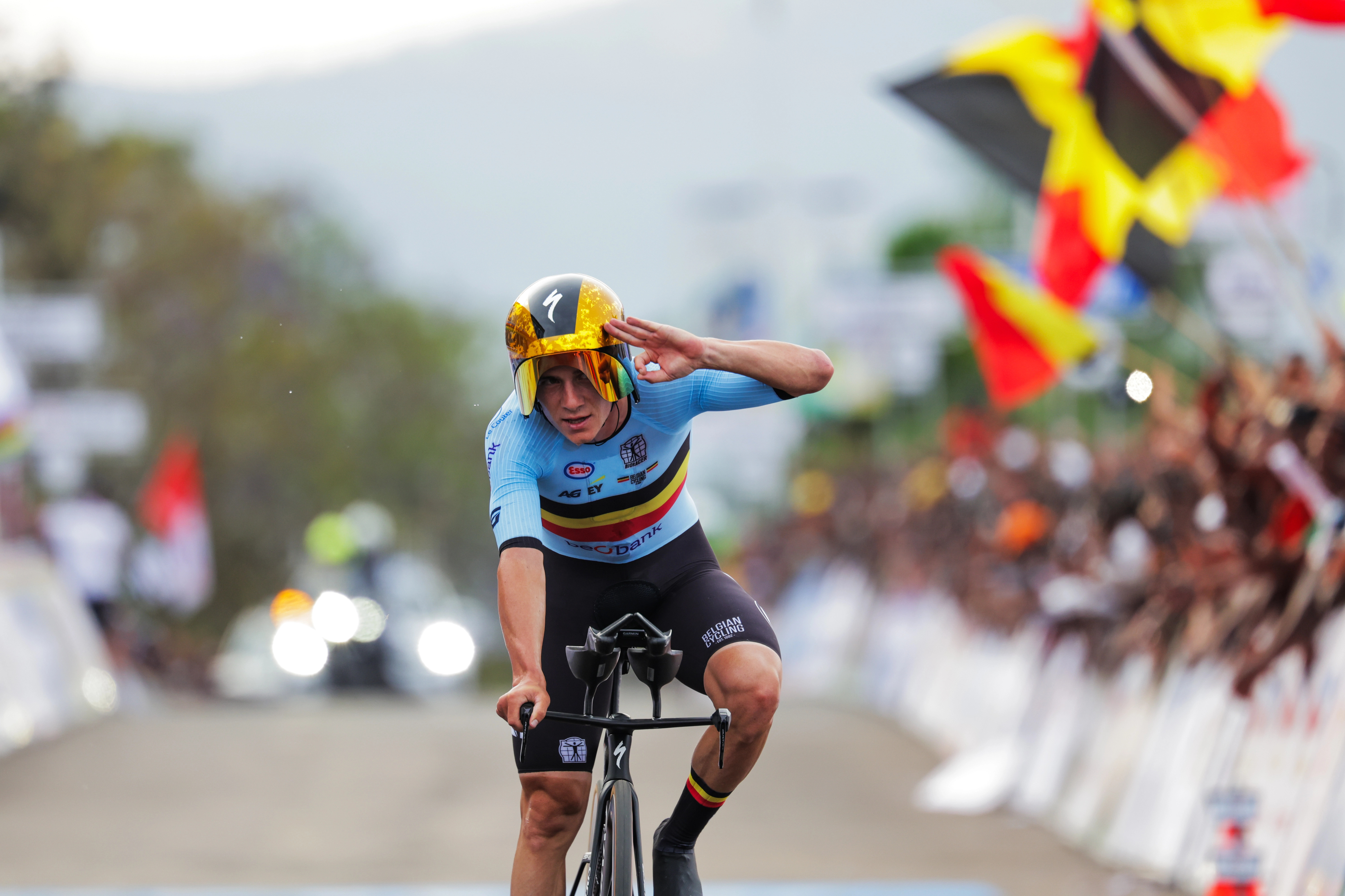 The Belgian’s travel from Rwanda to France went smoothly, and he was able to carry out a final reconnaissance ride on Tuesday afternoon. Now he faces Filippo Ganna (Italy), Joshua Tarling (Great Britain), Stefan Küng (Switzerland) and Mads Pedersen (Denmark) on the rolling 24km course that kicks up to the village of Étoile-sur-Rhône, in southeastern France.