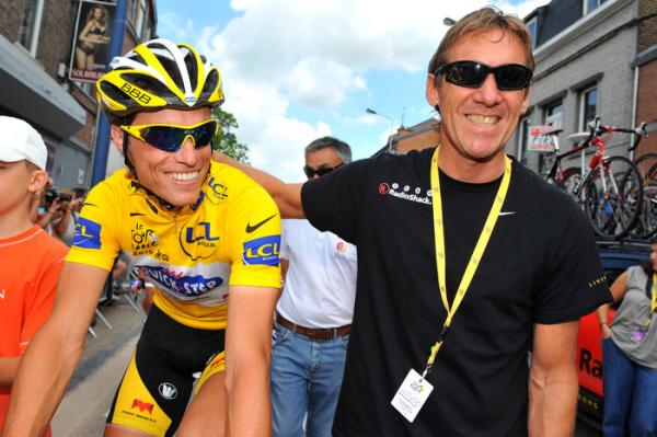 Sylvain Chavanel is also congratulated by Radioshack DS Dirk Demol.(Image credit: www.ispaphoto.com)