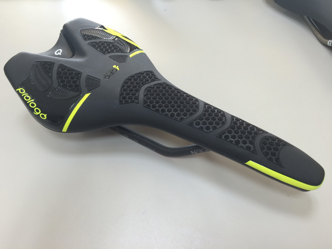 Prologo have a worldwide patent on this technology for saddles, Salvatore tells us "We saw this technology being used elsewhere (on grips for F1 gloves & seats) and thought we'd test it on saddles, it's proven very successful with a lot of our pro athletes opting for CPC".