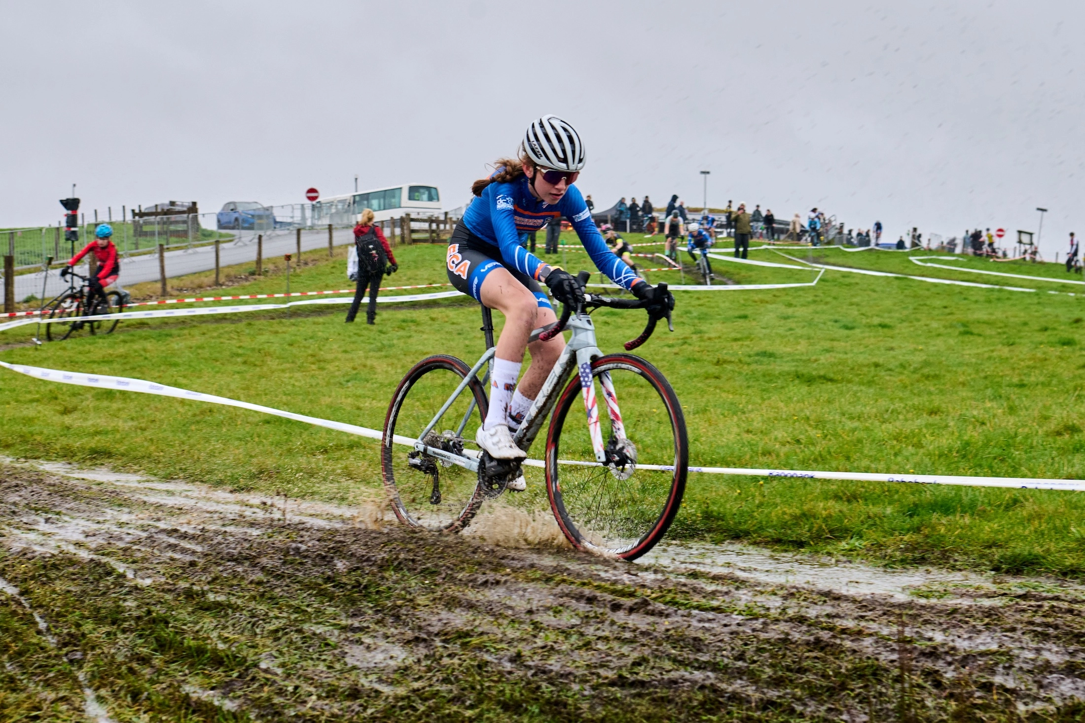 Coming into her first racing overseas, the 15-year-old had won six races in 11 outings, including Category 2 / 3 victories at Really Rad Festival of Cyclocross and Northampton Cyclocross. Unlike most of the dry conditions across the New England events this year, thick mud and thick grass were menacing at the first Dutch race.