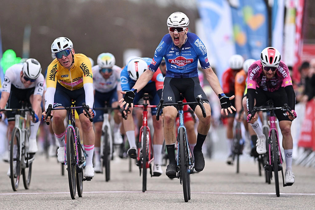 A breathless day of racing on stage 3 of Étoile de Bessèges-Tour du Gard was won by Henri Uhlig (Alpecin-Premier Tech) from a reduced group sprint, who surprised Slovakian national champion Lukáš Kubiš (Unibet Rose Rockets) for his first professional victory and roared in celebration over the line on Friday.