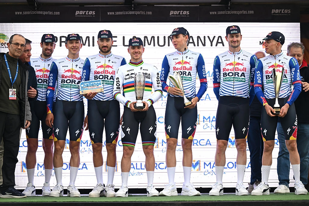 It was a collective effort, too, which netted the team the win, as a slight deficit on surprising race leaders Movistar mid-stage on the rolling south Mallorca course was then converted by all four remaining Red Bull riders into a four-second advantage.