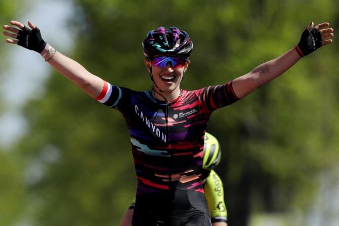 Katarzyna Niewiadoma (Canyon-SRAM) won the 2019 Amstel Gold Race Ladies Edition, attacking on the final climb of the Cauberg and holding off Annemiek Van Vleuten (Mitchelton-Scott) in a dramatic pursuit.