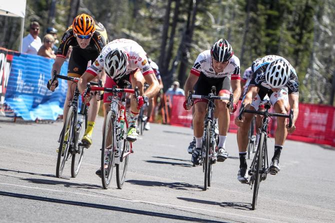 The next group of five that jumped away included James Stemper (5-hour Energy-Kenda), Scott Zwizanski (Optum), Colin Joyce (Cal Giant-Specialized), Devan Dunn (Cashcall) and Max Korus (Stage 17). The quintet was quickly joined by Cal Giant's Yannick Eckmann, Elbowz rider Michael Sheehan, Stage 17's Rene Corella Braun and Bissell Pro Cycling's Jeremy Vennell.