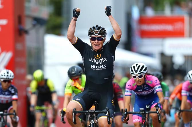 Kirsten Wild (Wiggle High5) won the Prudential RideLondon Classique on Saturday on The Mall in London. It was the second victory at the race for the powerful Dutch sprinter, this time taking the win in a crash-marred bunch kick ahead of Marianne Vos (Waowdeals) and Elisa Balsamo (Valcar PBM).