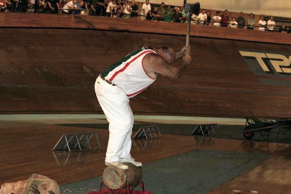 Size matters: Wood cutter David Foster and Malaysian track cyclist Azizulhasni Awang.(Image credit: Lynne Ryan)