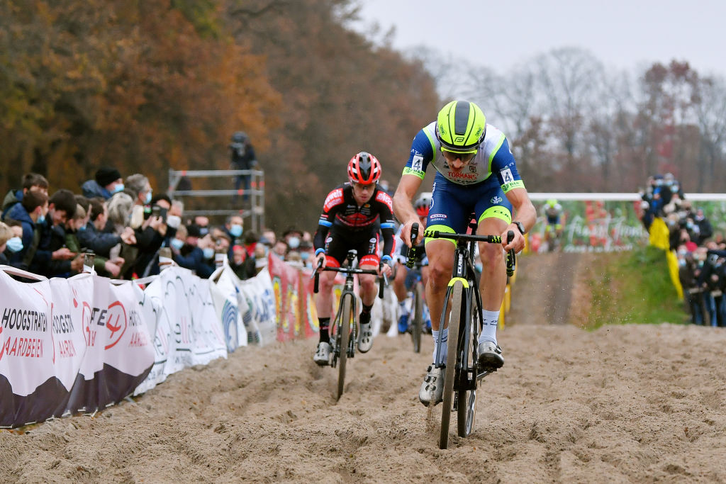 Brutally fast race in absence of Mathieu van der Poel sees Del Grosso and Sweeck on podium -