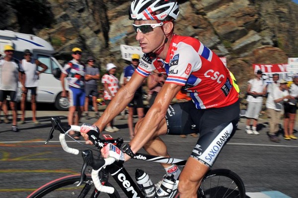 This evening in L'Alpe d'Huez, more than one bottle of champagne will pop in team CSC-Saxo Bank's hotel. After continuously building up the pressure against its rivals in this Tour de France, the Danish squad pulled off its greatest coup on the Queen stage of the event. Dominated by Riis' riders, the stage saw team captain Carlos Sastre score the victory on the epic slopes of L'Alpe d'Huez and take over the yellow jersey from team-mate Fränk Schleck.