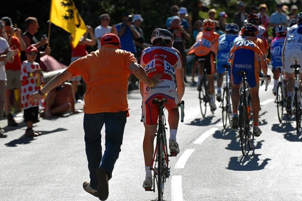 In the peloton Freddy Bichot (Agritubel) and Adam Hansen (Columbia) went down as well, and later George Hincapie also had his turn on the pavement.