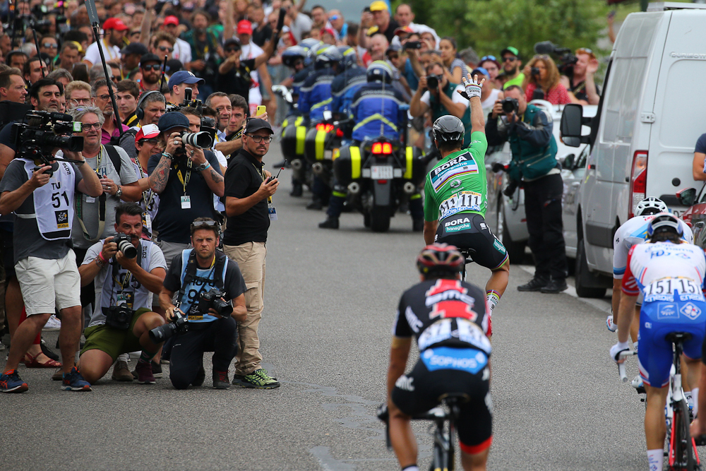 Peter Sagan (Bora-Hansgrohe) won his third stage at the 2018 Tour de France in Valence on Friday. The world champion, who is leading the points classification, waited patiently to start his sprint, coming around Alexander Kristoff (UAE Team Emirates) and Arnaud Demare (Groupama-FDJ) at the line.