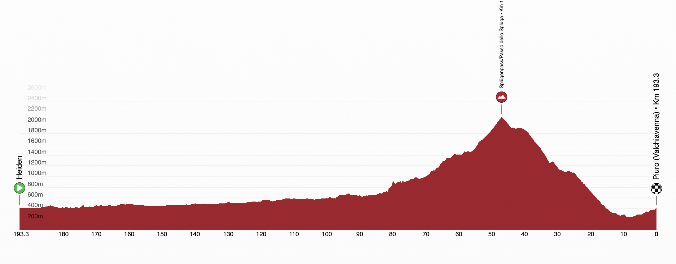 Here's a look at the profile of Wednesday's stage to Piuro (Valchiavenna), with the highlight of the route being the category 1 climb to Splügenpass, on the Italian border. It should be a day for the GC favourites, and a chance to take back time for the likes of João Almeida (UAE Team Emirates-XRG).