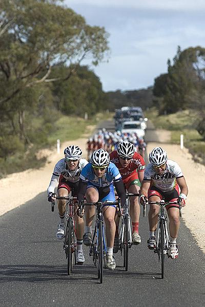 Riders escape the peloton on the Ouyen Patchewollock road during stage eleven of the tour.(Image credit: Shane Goss)