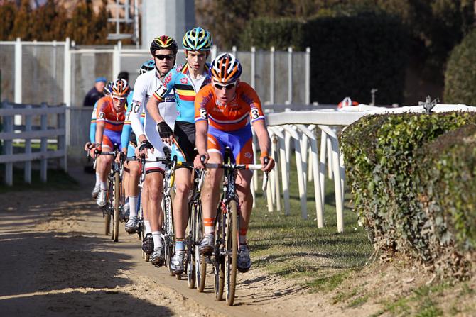 Mike Teunissen (Netherlands) powers the chase group at the Rome World Cup which took place on the grounds of a horse racing venue.(Image credit: Photopress.be)