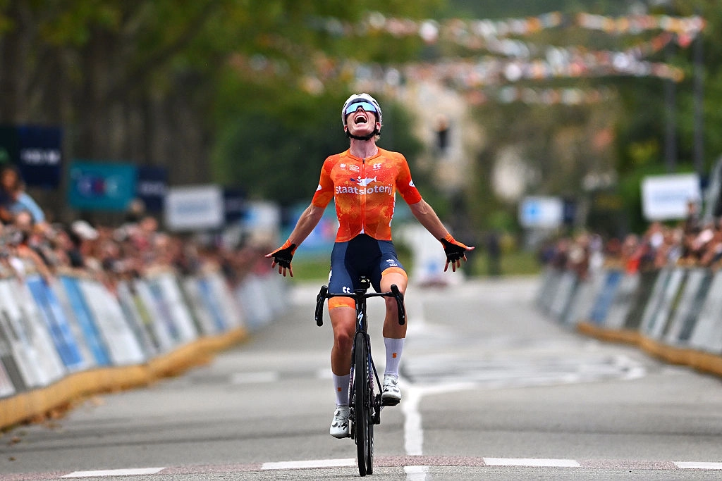 Dutchwoman finishes 1:18 up on Kasia Niewiadoma, who outsprints Anna van der Breggen for silver