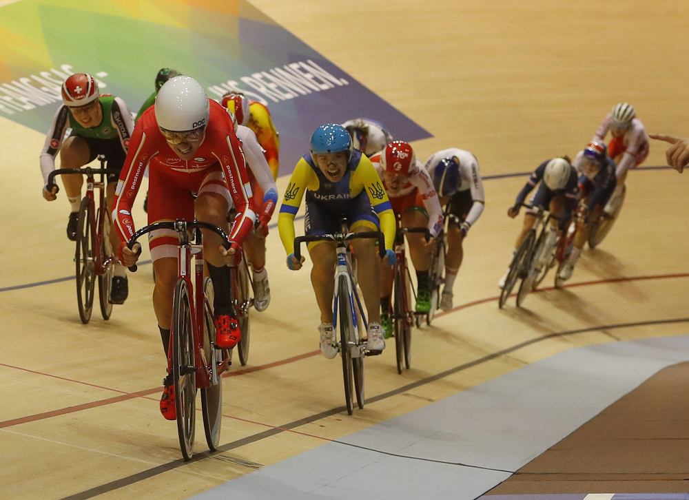 In other racing on Saturday, Italy's Filippo Ganna took gold in the individual pursuit, beating Portugal's Ivo Oliveira by nearly three seconds. Domenic Weinstein (Germany) took the bronze. Poland's Alan Banaszek won the men's Points race ahead of Niklas Larsen (Denmark) and Maximilian Beyer (Germany). Dutch sprinter Jeffrey Hoogland beat Joachim Eilers (Germany) Quentin Lafargue (France) in the men's 1km time trial, while Denmark's Trine Schmidt took gold in the women's Scratch race ahead of Tetyana Klimchenko (Ukraine) and Evgenia Augustinas (Russia).