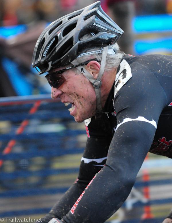 The 55-59 master men's contest was a battle of heavy hitters, with the legendary Ned Overend (Specialized) powering to a solo victory.