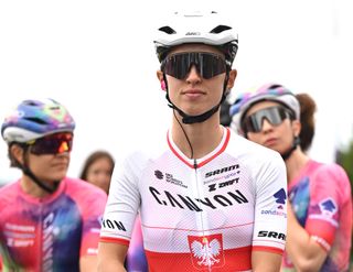 In 2023 at age 29, the Polish rider returned to the top step with a gold medal at the UCI Gravel World Championships, then wearing the rainbow jersey she won Big Sugar Gravel in the US.